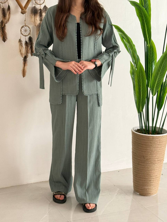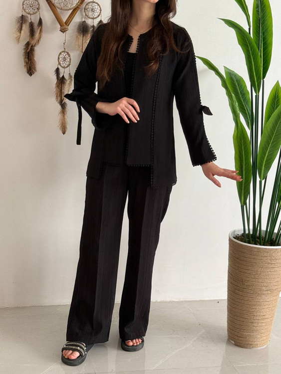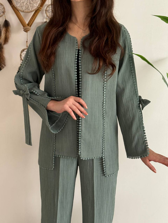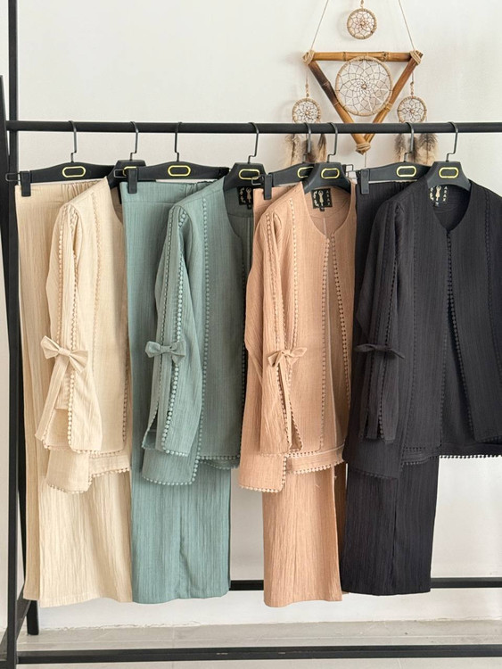 جنس پارچه کراس خنک ترین پارچه بدون رنگدهی نیازبه اتو کشی نداره یک کار شیک مجلسی اسپرت ترکیب شده بارنگبندی عالی شلوارش نمیبگ مدلش کمرش نمیکش باقد بلند