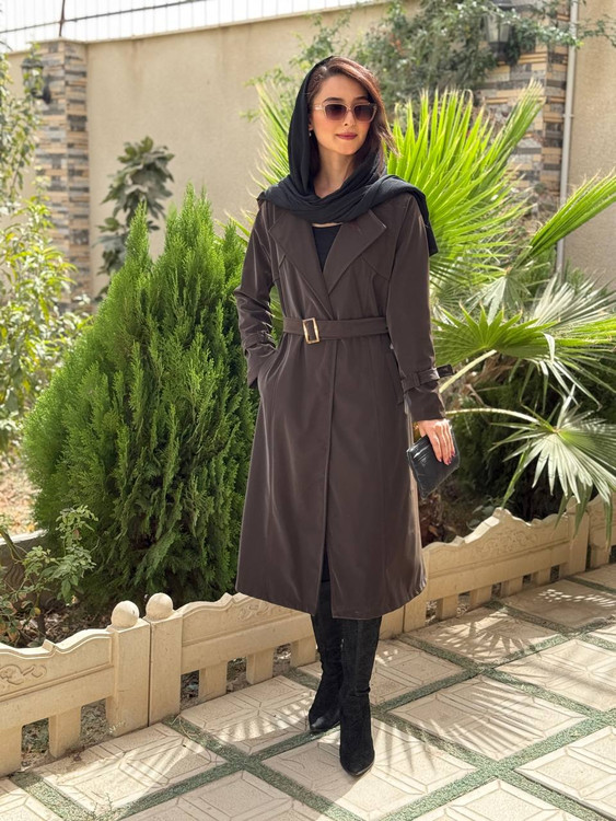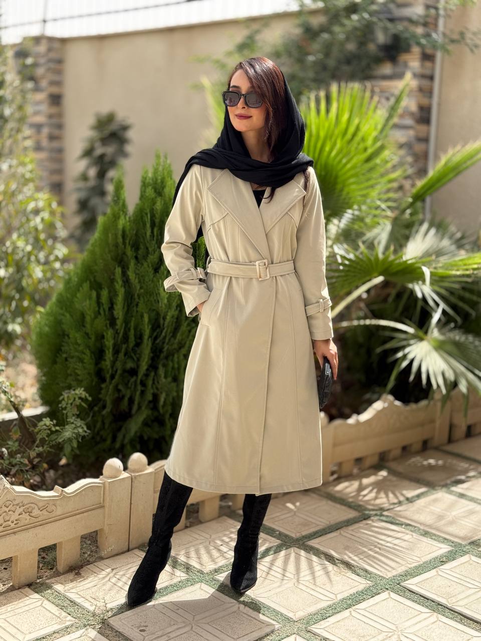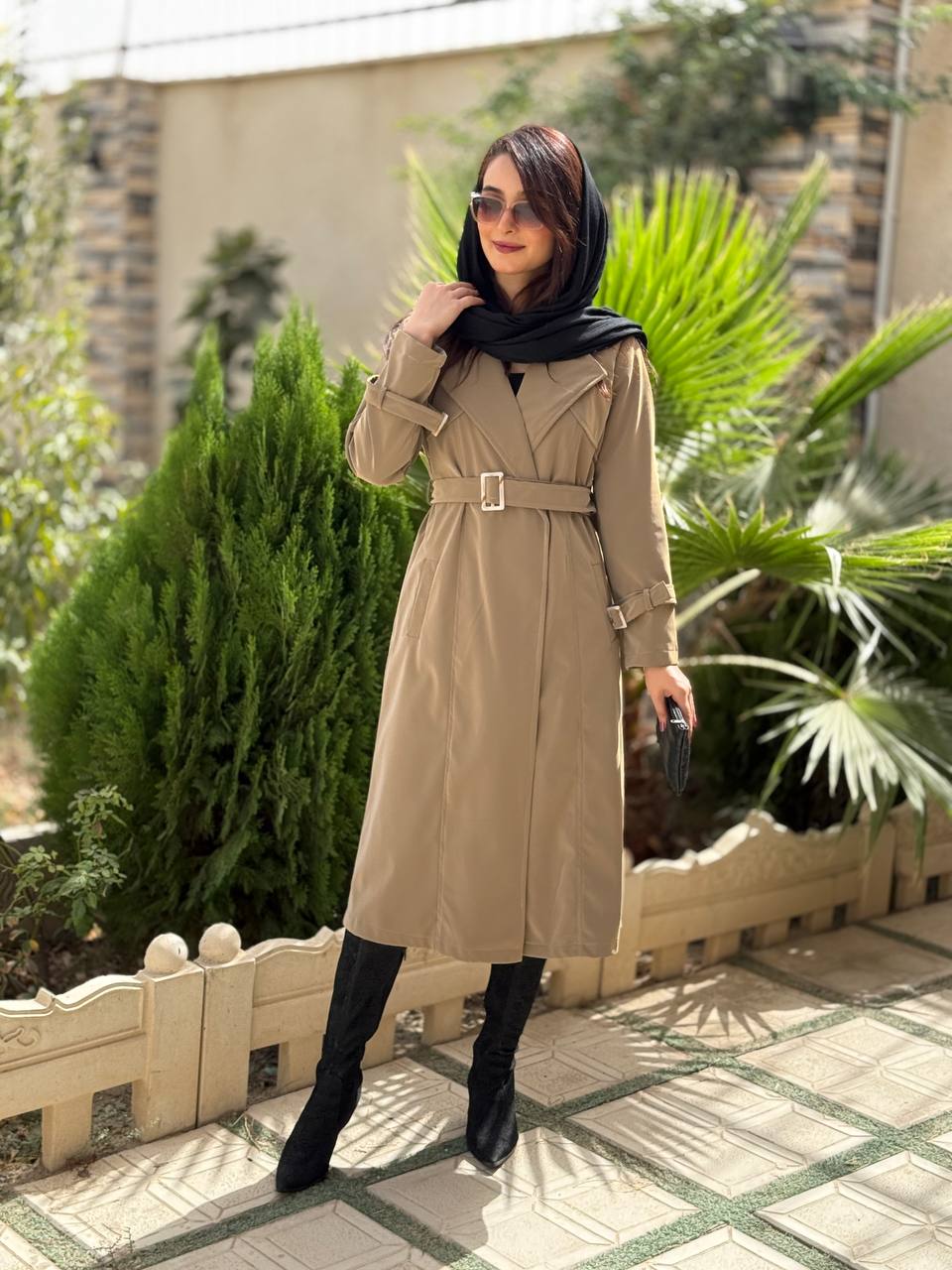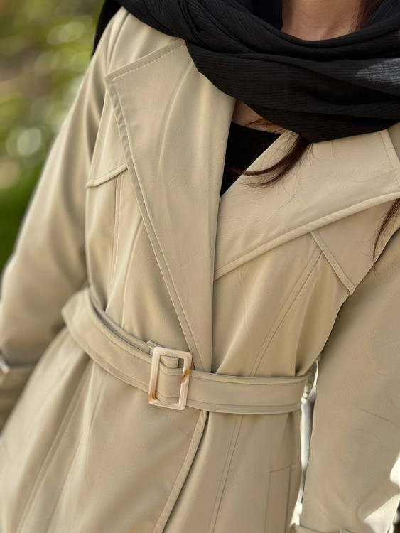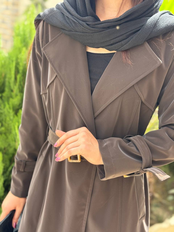 بارونی بلنددوجیب کاربردی آسترکشی شده کمربنددارجنس چرم سیلیکنی