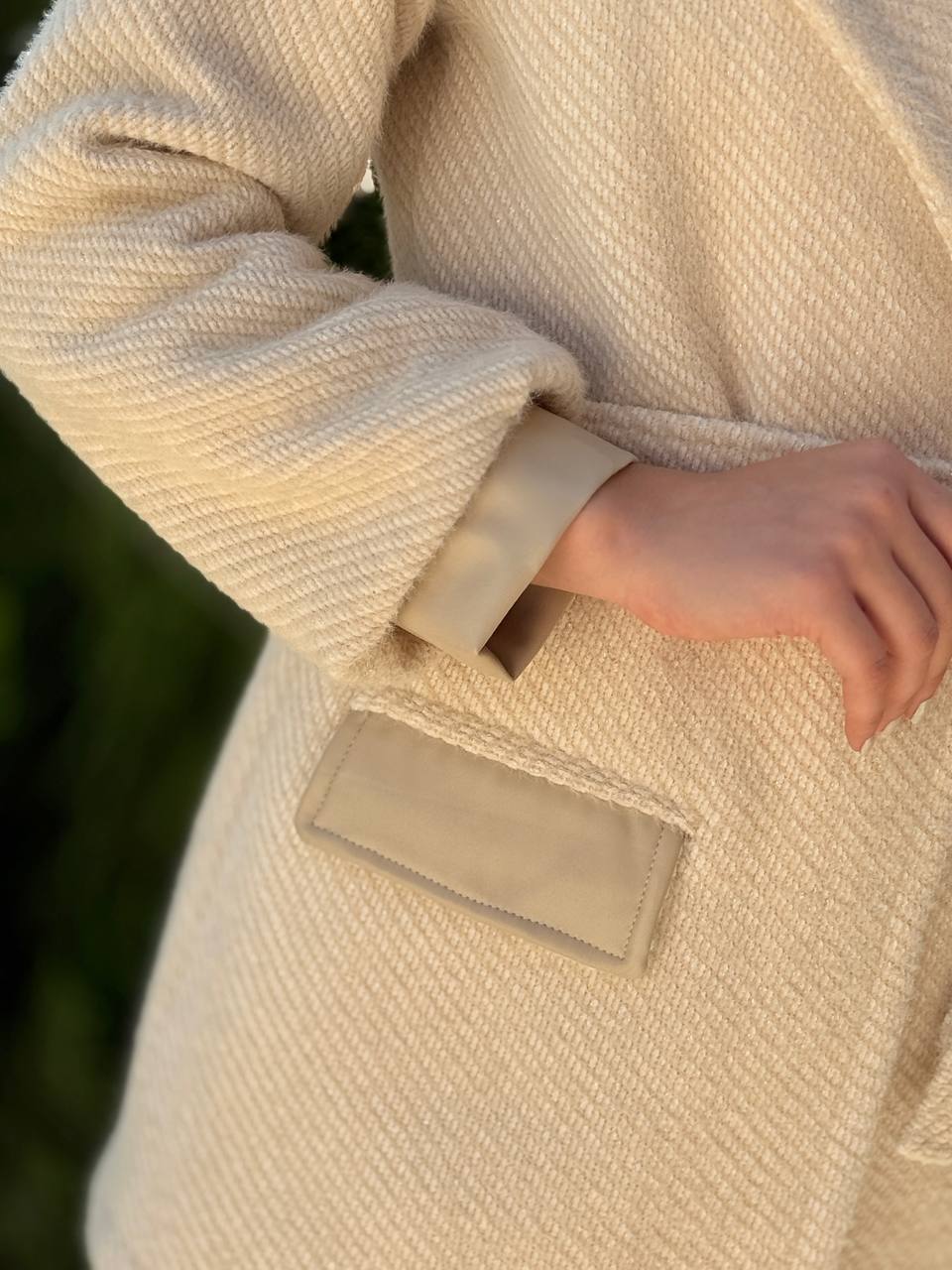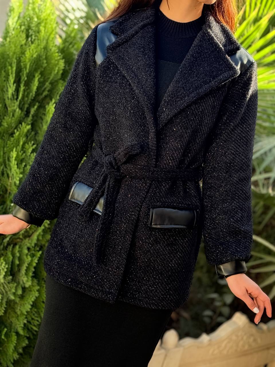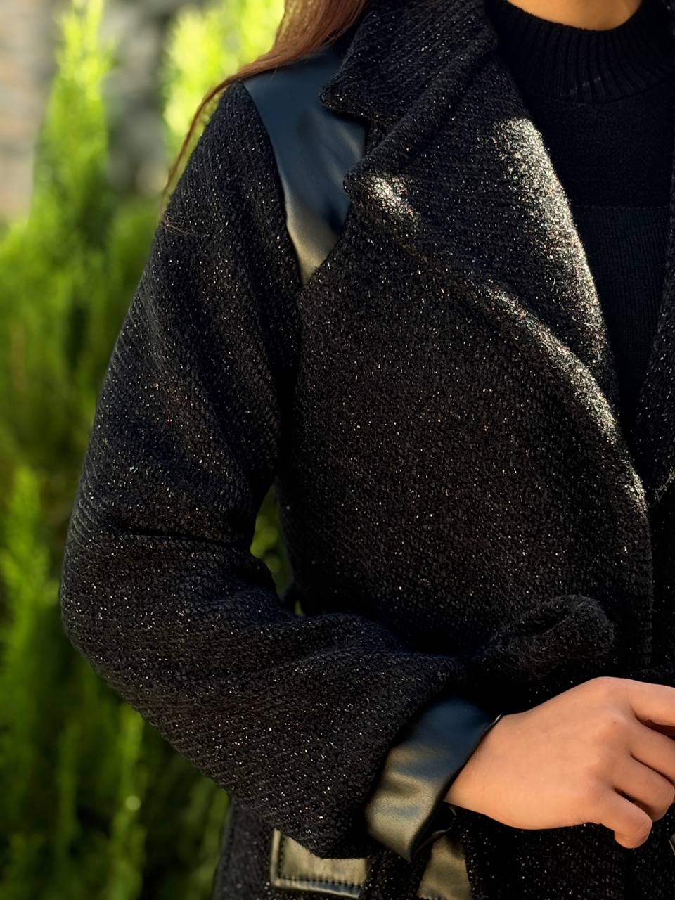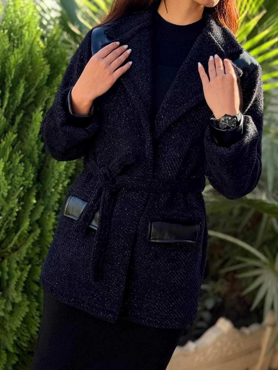 ✨ جزئیات طراحی: ترکیب چرم در جیب و سرآستین