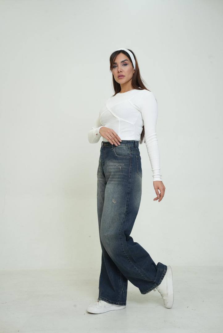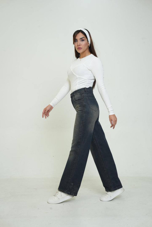 شلوارفون شافل بگ جین پارچه خارجی باضمانت کمرساده فاق بلند
