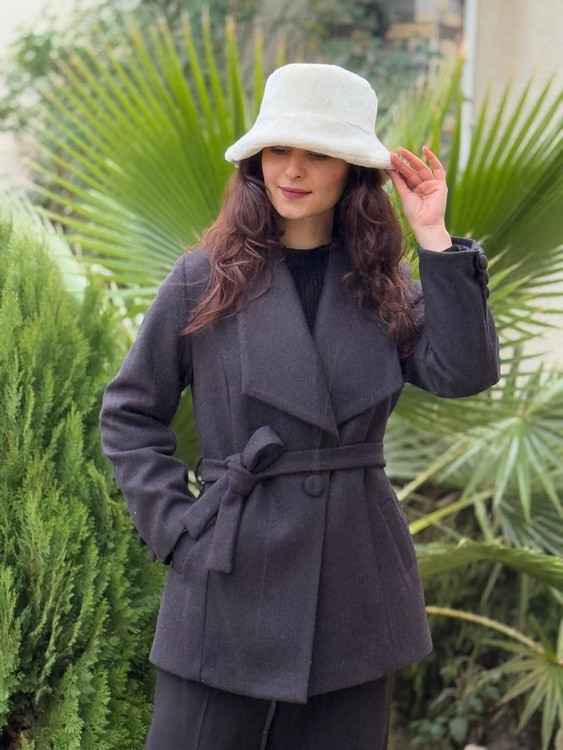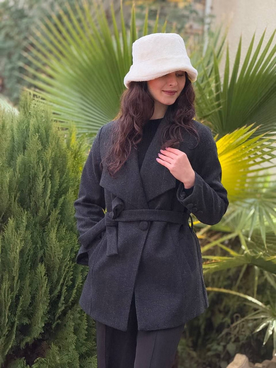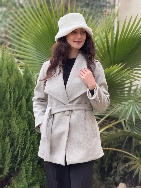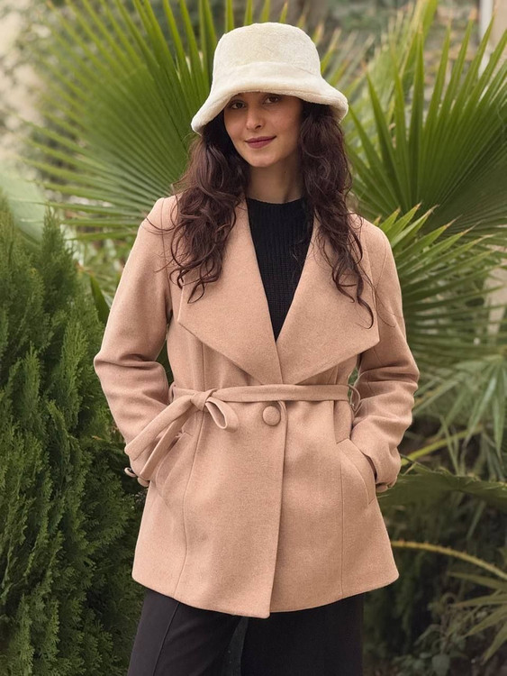 پالتو فوتر آستردار زنانه جلو دکمه باکمربند یقه پهن