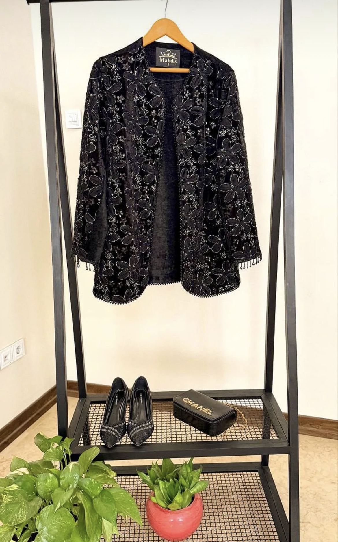 مانتوی مجلسی مشکی با گلدوزی ظریف ✨