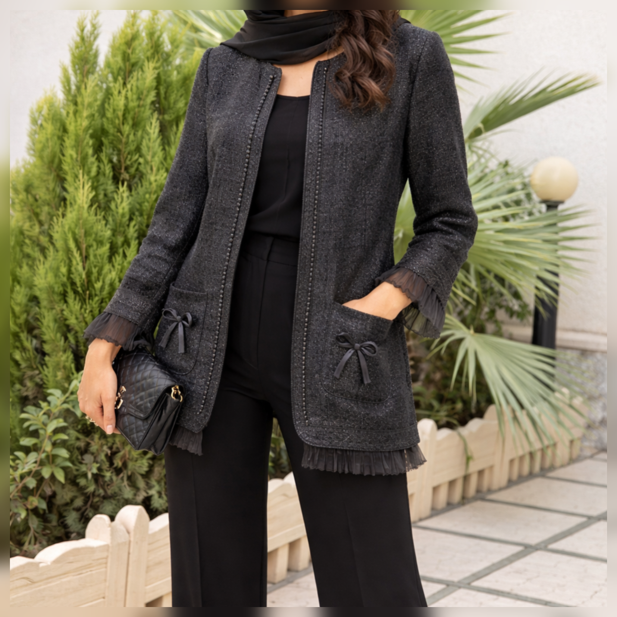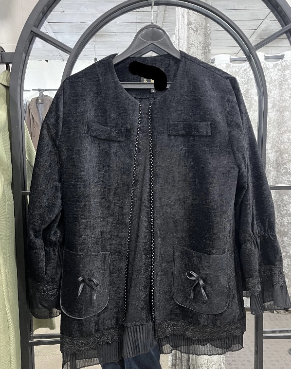 مانتومخمل دانتل‌کار جلو سنگ‌دوزی شده کاملا مشکی بدون ریزش مخمل