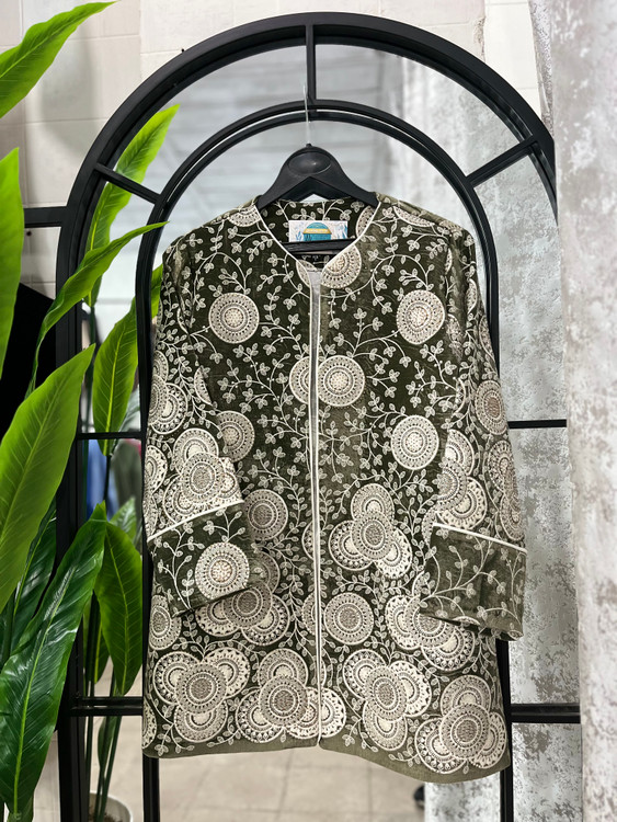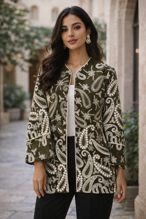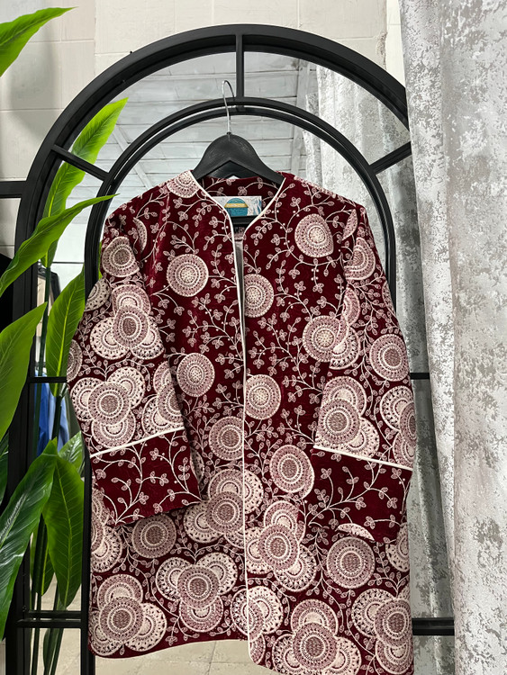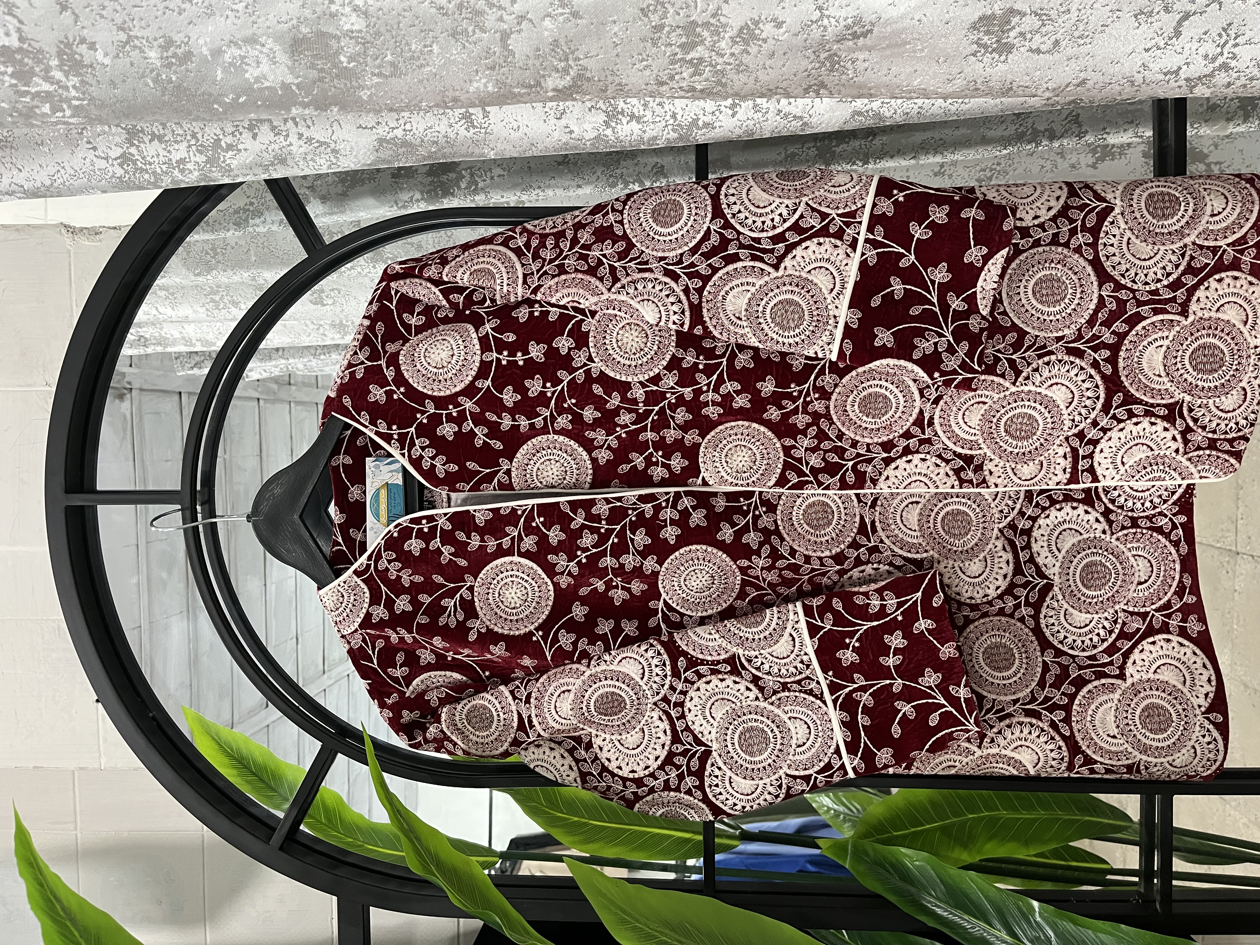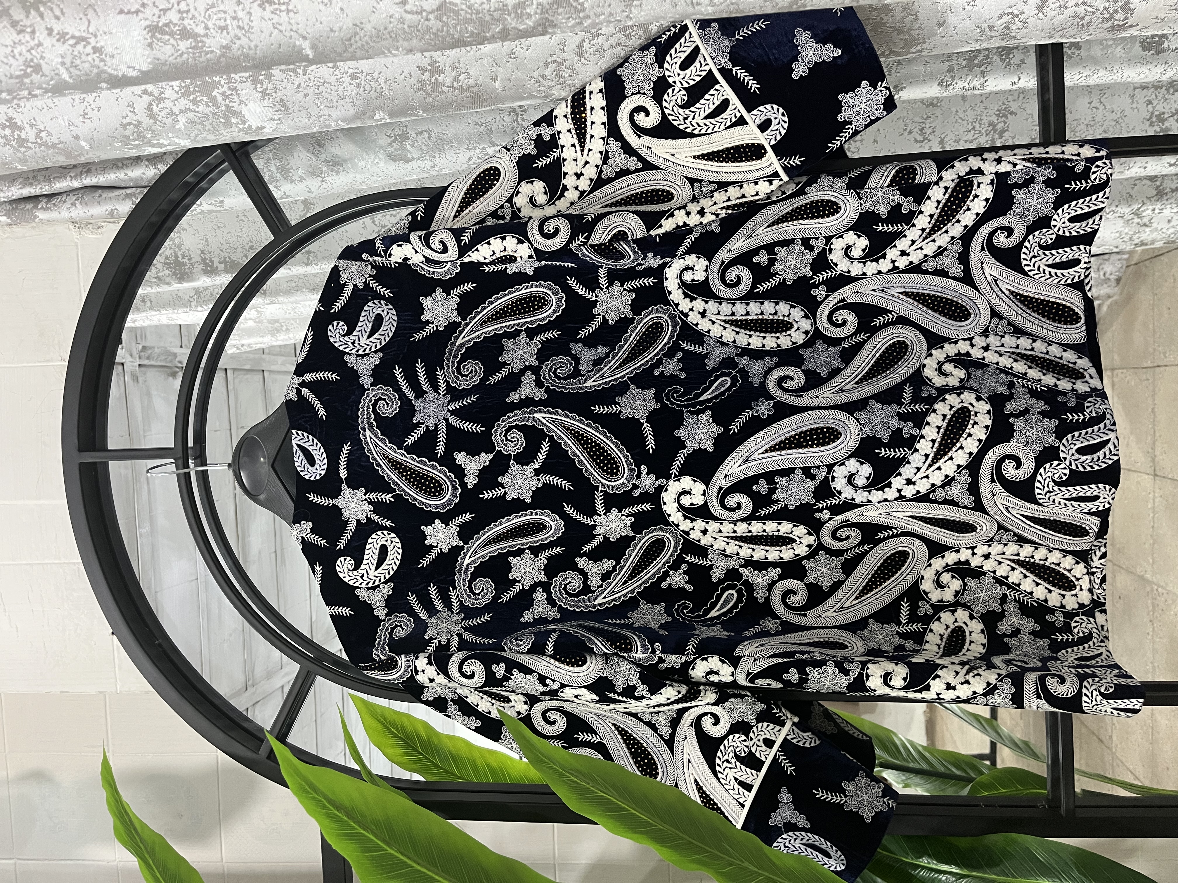 این مدل خاص با مخمل هندی اعلا طراحی شده و با نواردوزی، مقزیدوزی، فراستین و پیشهکار ظریف جلوهای کاملاً شیک و مجلسی گرفته.