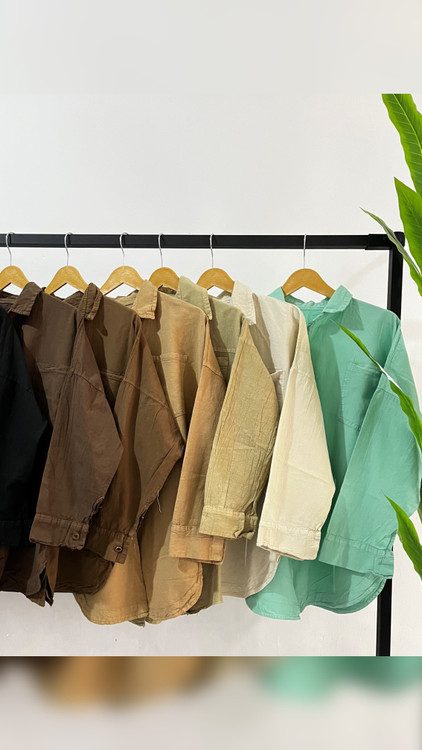 مانتو پیراهنی جلو دکمه الیاف کنفی
