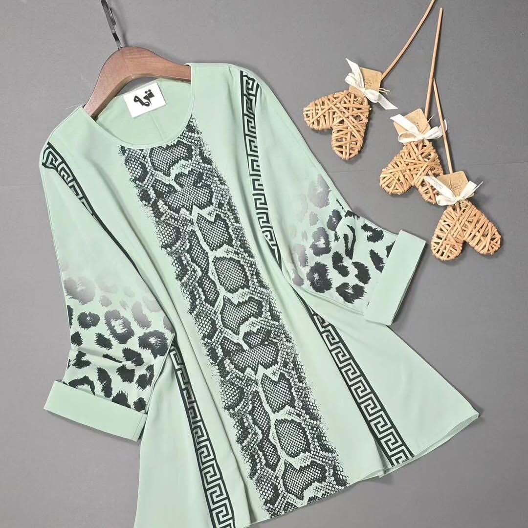 شومیز پلنگی کار فوق‌مزونی پلنگی نگین‌دار سایز ۵۲جنس الیزه درجه یکناموجود